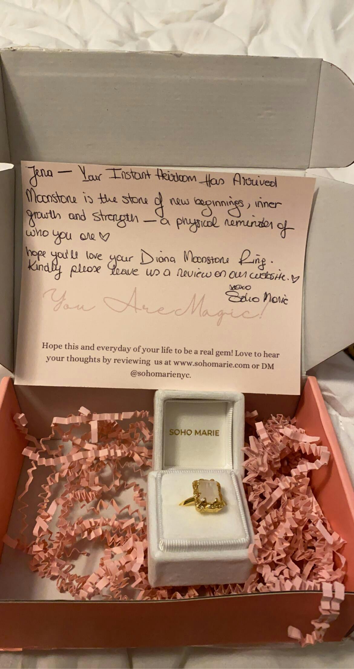 For yourself or someone special, our Emerald Cut Moonstone ring makes a bold statement. Ideal for those big moments in life; wear it on its own, or pair it with other gemstone jewelry for a truly glam look.